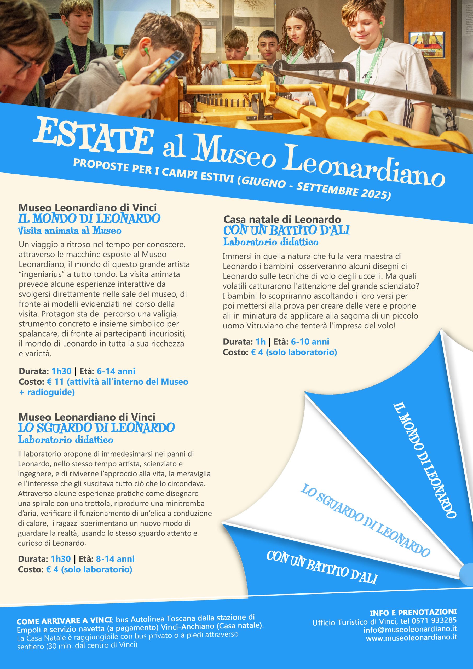 L’attività è fruibile al costo di € 4.00 p.p. Non è compreso il costo del biglietto d’ingresso al Museo Leonardiano.
